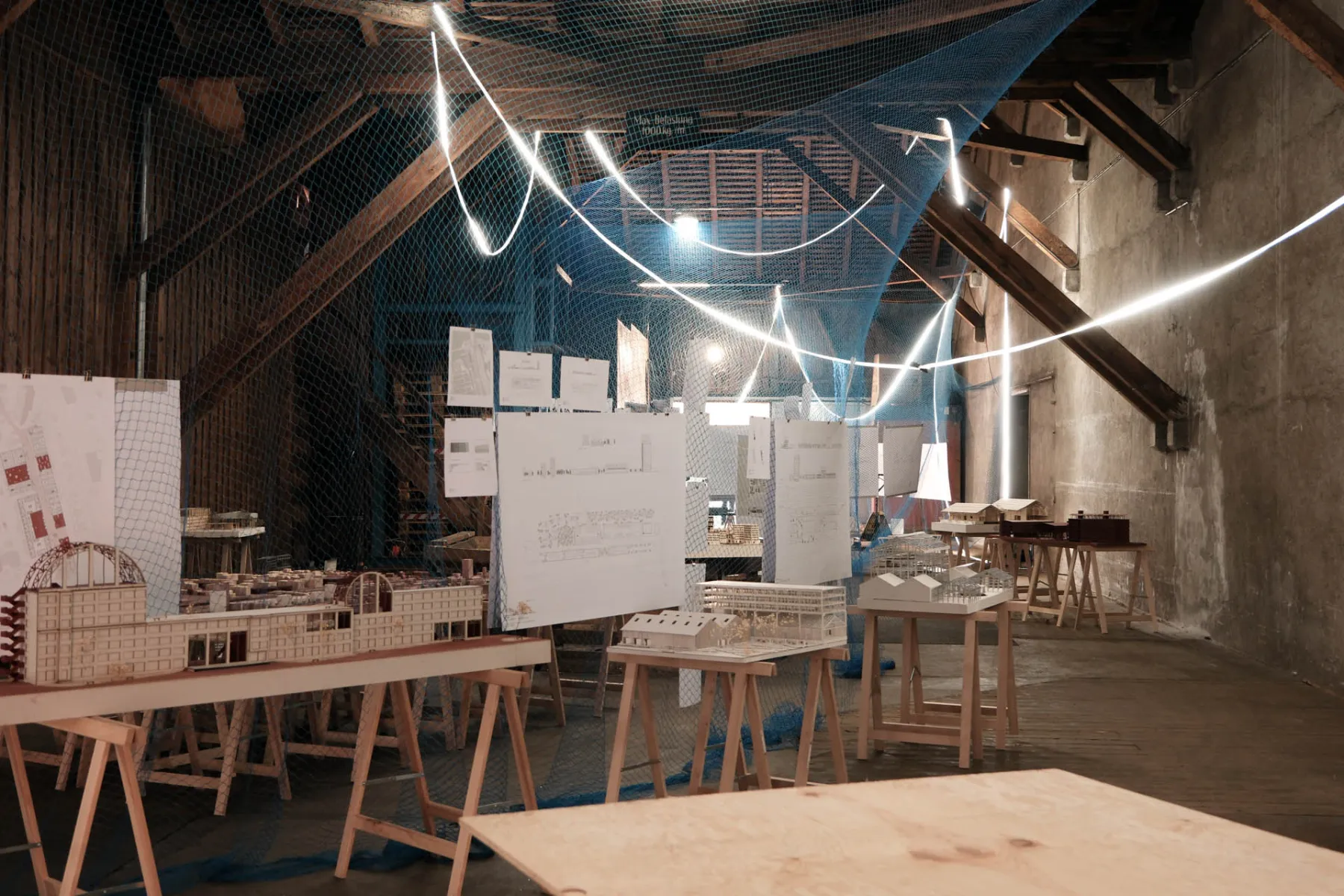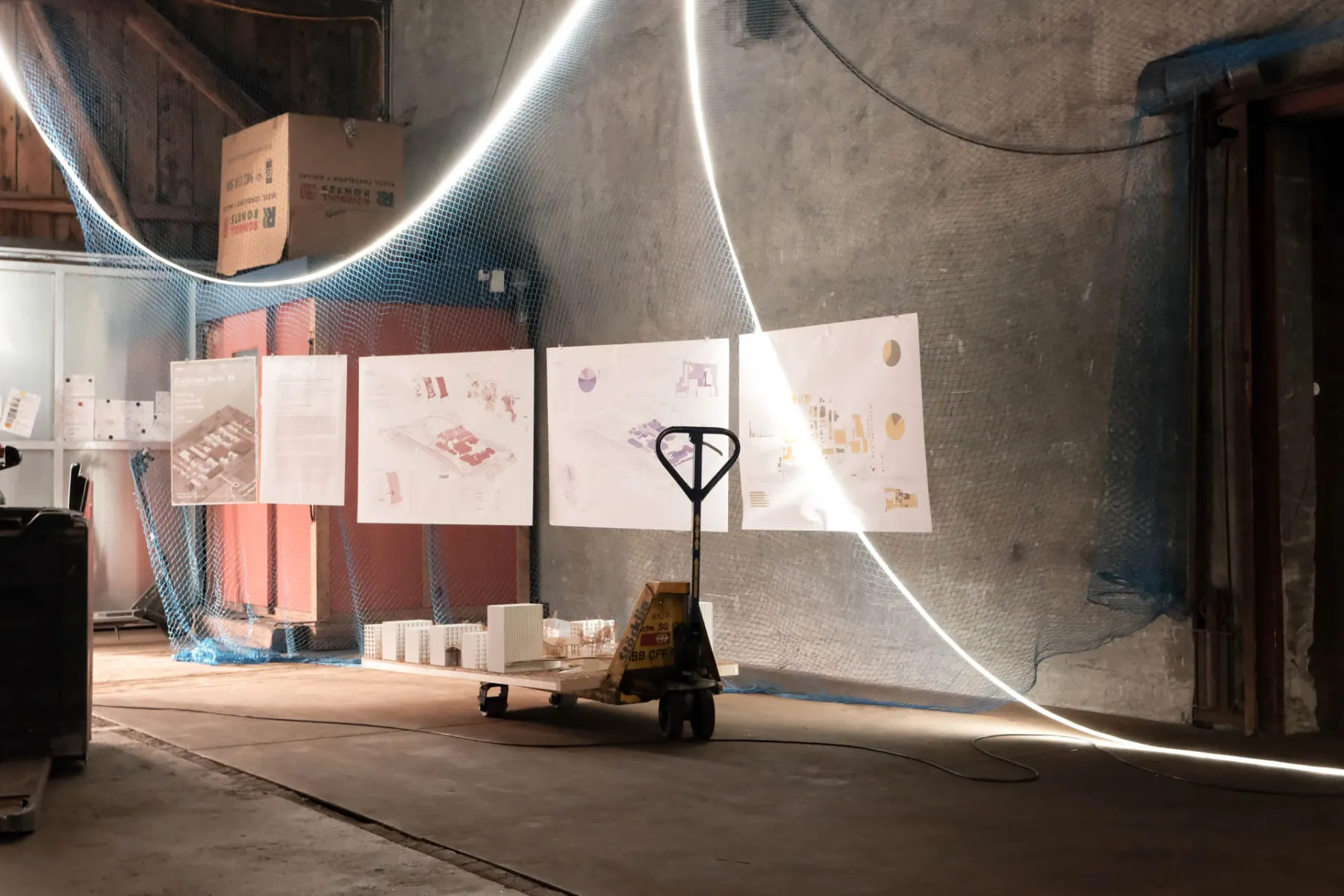 In October 2025, the projects were presented in the exhibition «Gleisraum Buchs» in a hall of the former customs warehouse in Buchs. Plans, models and scenarios documented the students’ different approaches to the future development of the site.